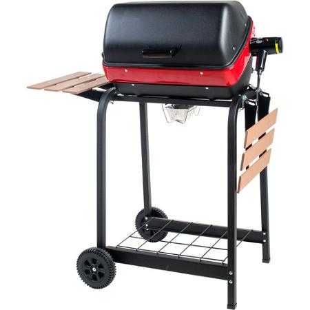 This East Street Electric Cart Grill, along with its foldable, composite-wood side tables, fits perfectly on your balcony patio or deck. With three heating positions, this grill is capable of (1) creating a zone of even heat for traditional grilling, (2) creating a versatile zone of different temperatures for cooking medium, rate and well-done simultaneously and (3) converting to a fully vertical position for rotisserie grilling (rotisserie sold separately). This rolling cart ,makes it convenient to transport, and its wire shelf helps keep your grilling materials together. Durable folding composite-wood side tables.